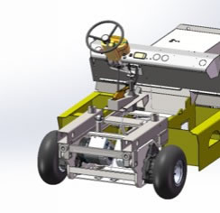 نظام تعليق أمامي مستقل، محورخلفي منفصل بواسطة محرك KDS، صندوق بطارية الليثيوم الأمامي، مكبح جرني أمامي ومكبح قرصي خلفي، نظام توجيه هيدروليكي بالكامل، مكبح يدوي